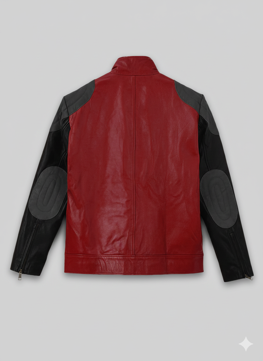 Akon Leather Jacket Men’s Red Black Two Tone Biker Style Description