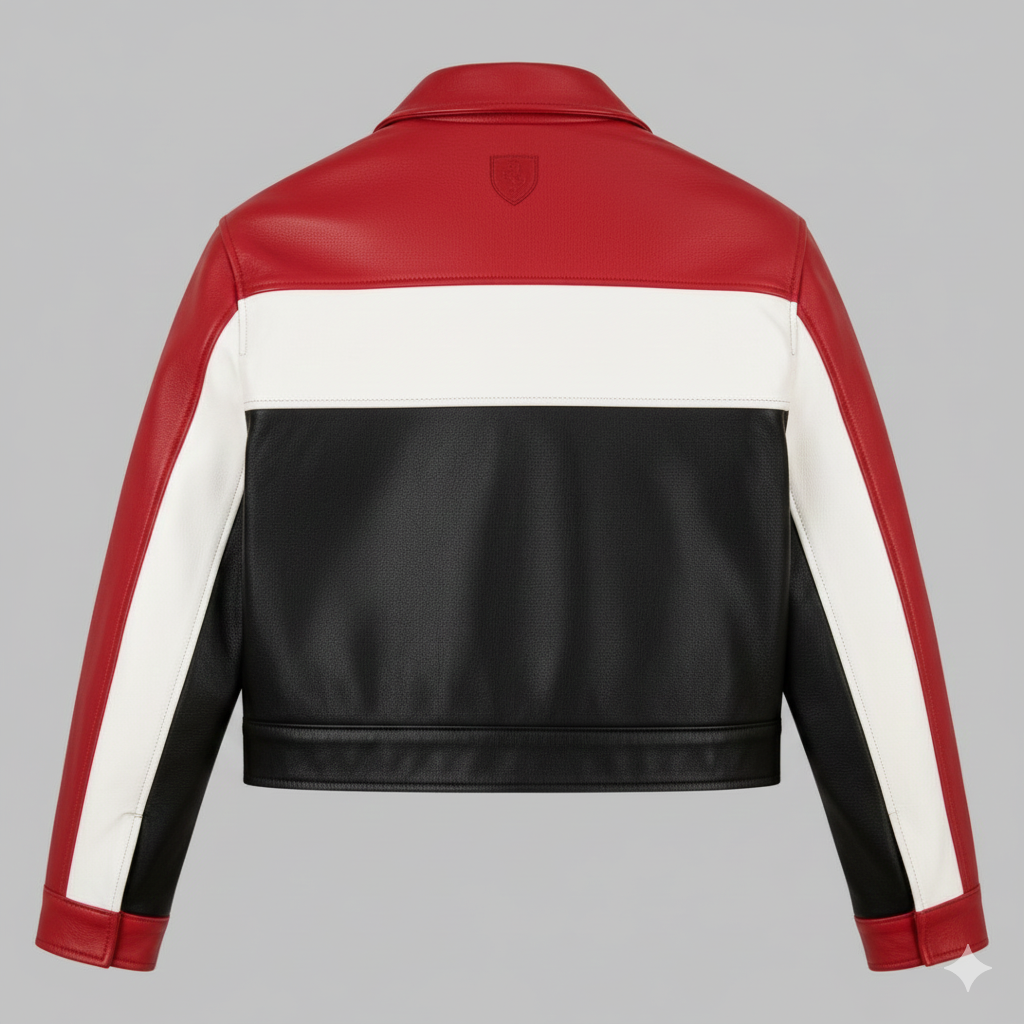 The Avirex Cropped Leather Jacket serves as a bold statement piece for any fashion enthusiast looking to blend vintage racing aesthetics with modern street style. We craft this garment using premium real leather to ensure both durability and a luxurious feel. The striking colorblock design immediately catches the eye, featuring a balanced mix of vibrant red, deep black, and crisp white panels. Whether you are heading to a casual meet-up or a night out, this Avirex Cropped Leather Jacket provides the perfect silhouette to complement high-waisted jeans or skirts.