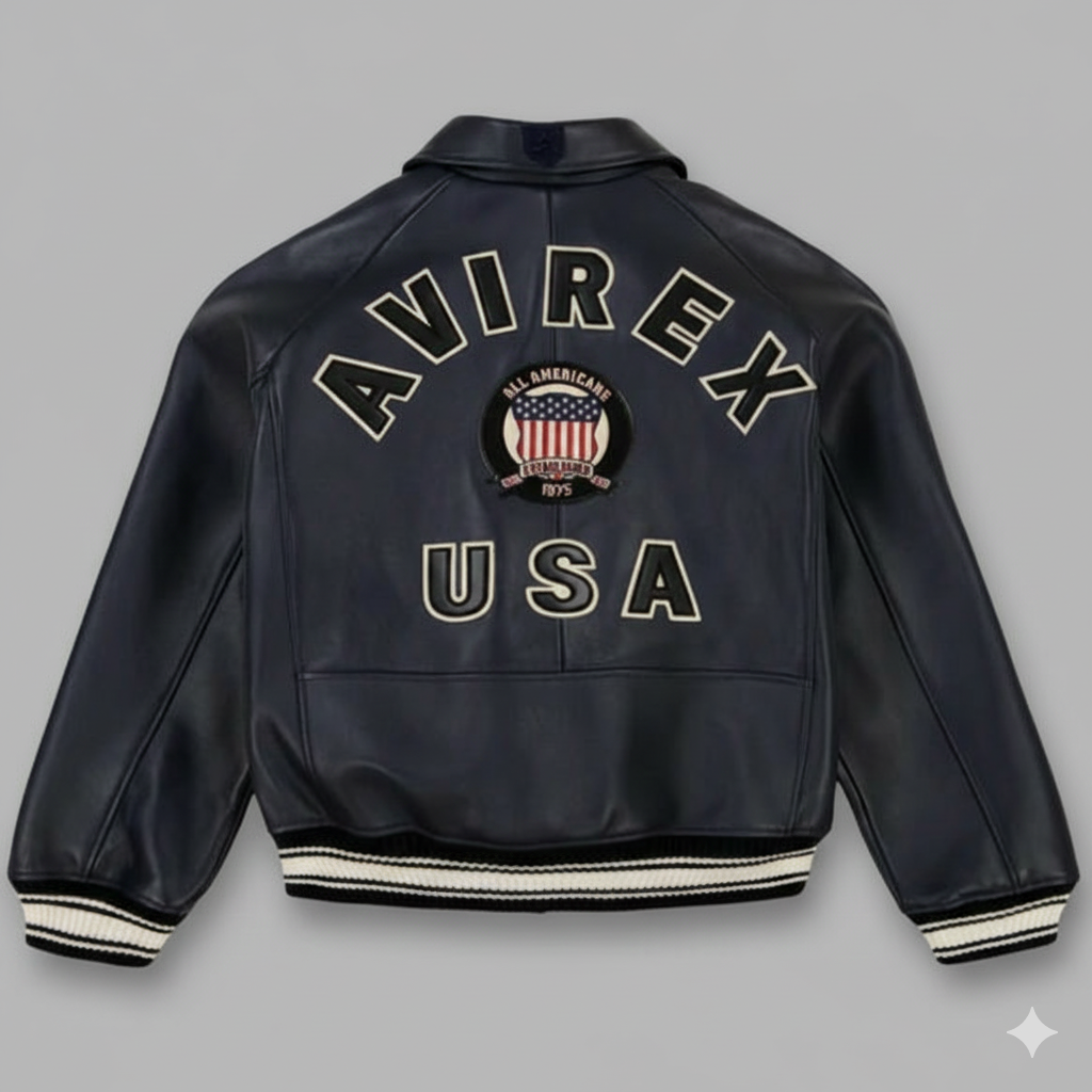 • Heritage Branding: Proudly displays the iconic Avirex shield patch embroidery.