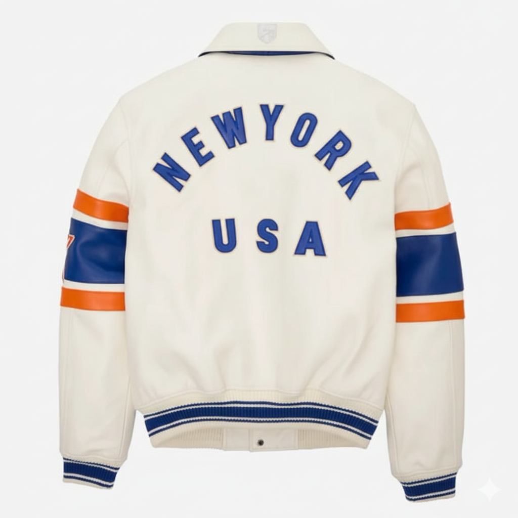 This Leather Varsity Jacket showcases legendary branding across the back. High-density stitching ensures a professional finish. Inside, a smooth lining makes layering easy. You can wear it over a hoodie or a simple tee. This Premium Bomber Coat uses reinforced seams and heavy-duty ribbing. It maintains its shape over years of wear. This jacket embodies the spirit of New York City. It provides elite craftsmanship and durability. This is the ultimate choice for your collection.