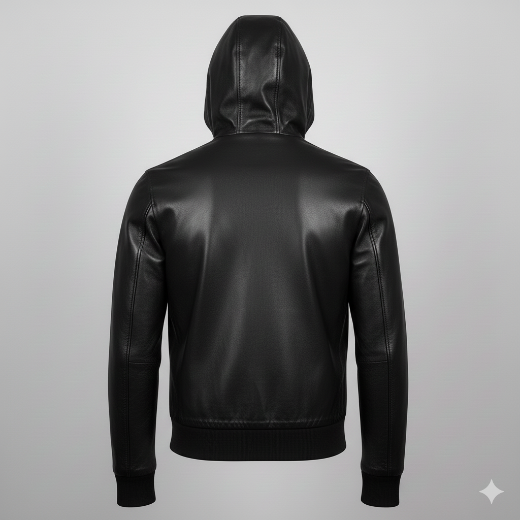 Black Leather Hoodie Jacket Description