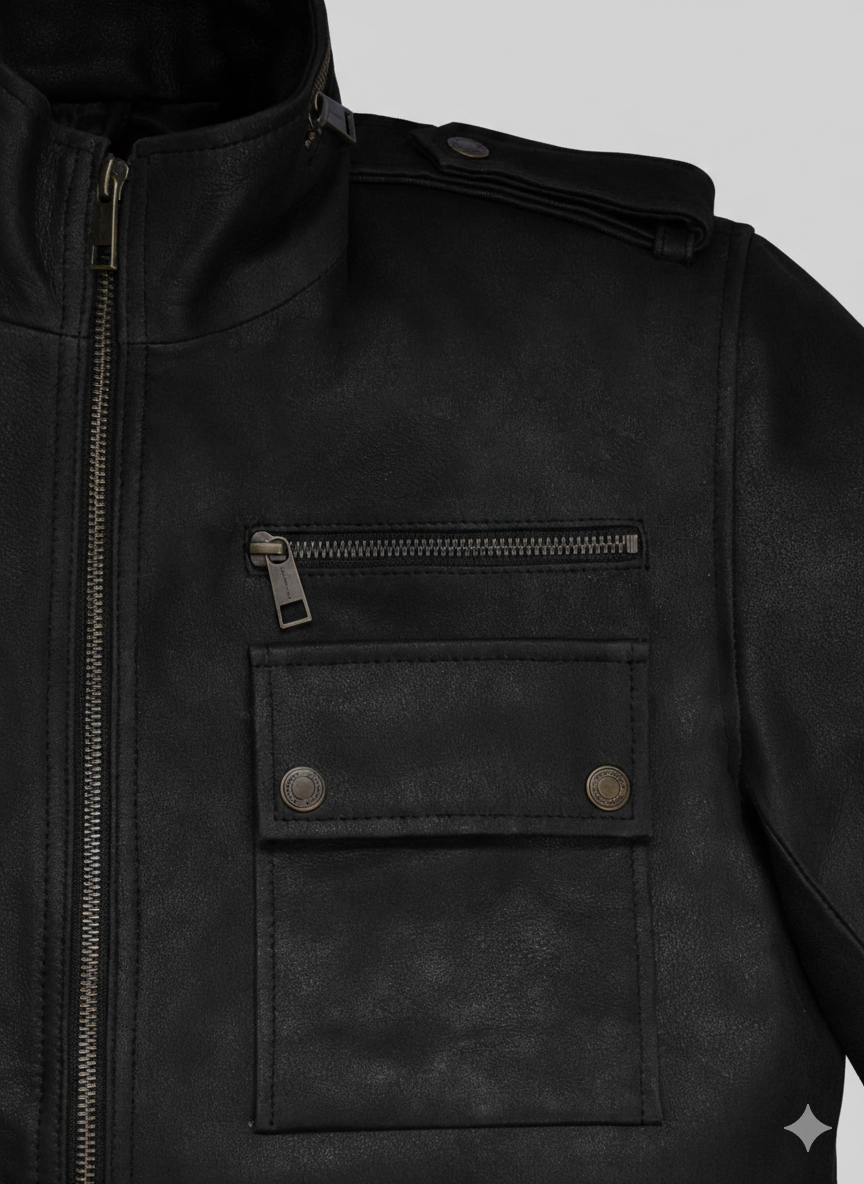 Black Leather Military Jacket for Men Premium Slim Fit Style Description