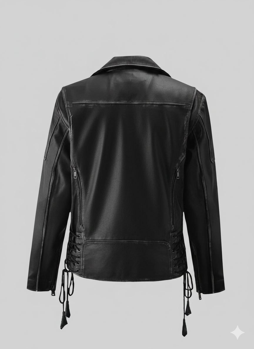 Iconic Design: Classic asymmetrical front zipper for a bold biker aesthetic.