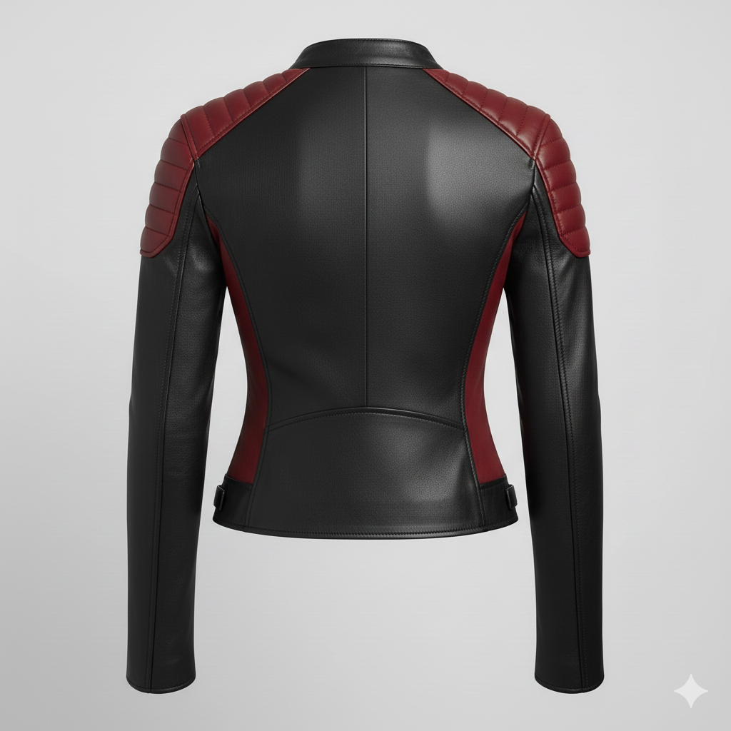 We’ve refined the classic biker elements, featuring elegant, subtle quilting on the shoulders and a clean stand collar. Every detail, from the precise stitching to the smooth-gliding zippers, speaks to its premium quality. If you are searching for a jacket that offers both protection and high-end style, this Black Red Women Leather design is an ideal choice.
