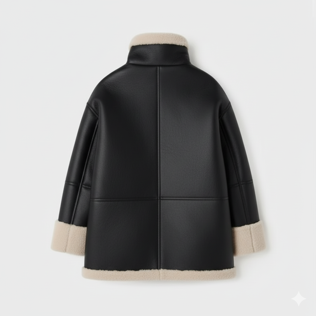 Exposed Cuffs: Elegant shearling trim on the sleeves adds a sophisticated touch.