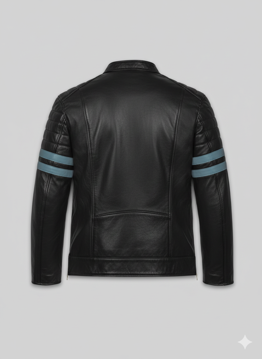Black Striped Leather Jacket Men’s Quilted Biker Style Slim Fit Description