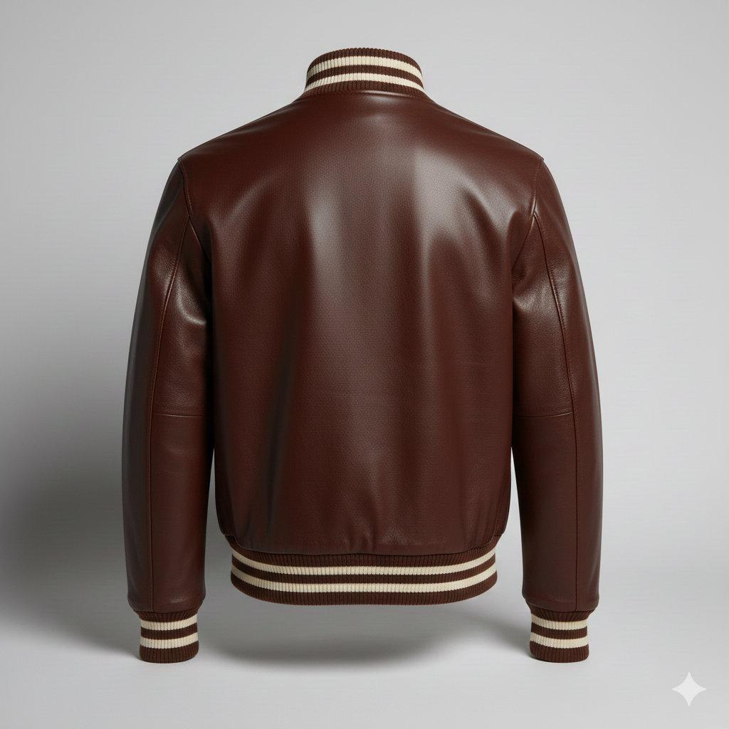 Brown Leather Varsity Jacket Description