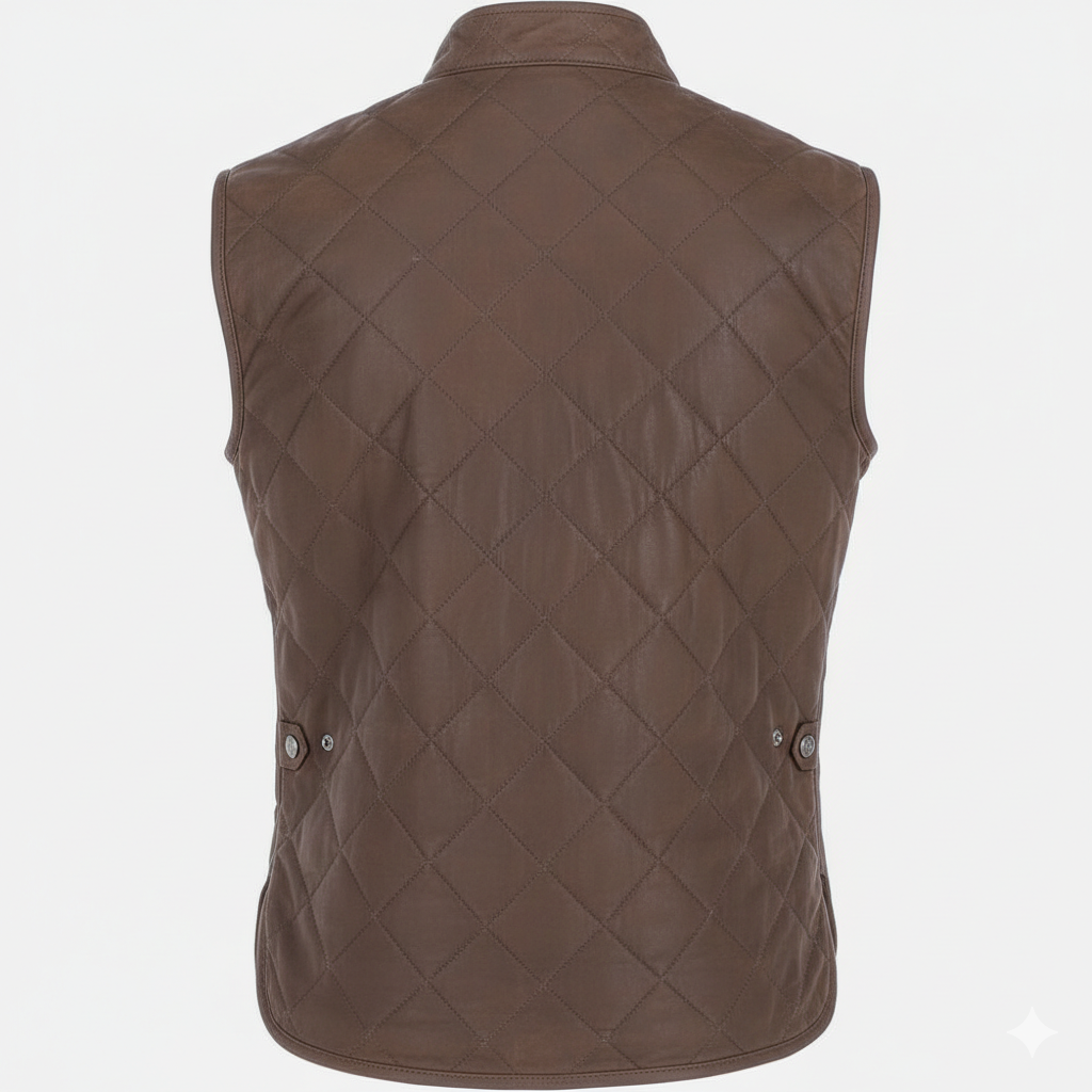 The Brown Quilted Leather Vest serves as a cornerstone of any modern wardrobe, blending rugged durability with sophisticated style. We craft this piece from high-quality genuine leather to ensure it withstands the test of time while maintaining a soft, luxurious feel. The rich chocolate tone complements various outfits, making it an ideal choice for layering during transitional seasons or colder months.
