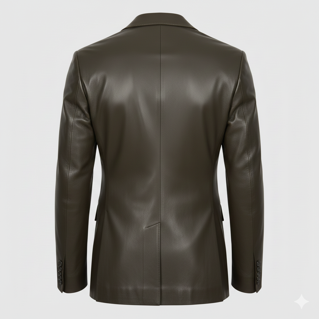 Dark Olive Leather Men’s Blazer Jacket Coat Description