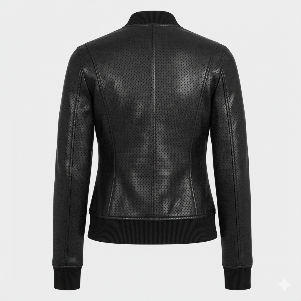 Experience the perfect fusion of classic bomber style and modern femininity with our luxurious Dotted Black Leather Bomber Jacket. Crafted from premium soft leather featuring a sophisticated dotted texture, this jacket offers a refined, structured look that remains lightweight and comfortable. The silhouette is gently contoured at the waist, providing a flattering fit unique to women’s bomber wear. This exclusive Dotted Black Leather Bomber is designed for the style-conscious individual seeking quality and distinction. The sleek zippered front and elegant ribbed trims maintain the authentic bomber appeal. Elevate your wardrobe with the ultimate Dotted Black Leather Bomber, a versatile piece for day or night. See more premium leather designs at www.chinkaraleathers.com. Invest in the timeless quality of our Dotted Black Leather Bomber today.