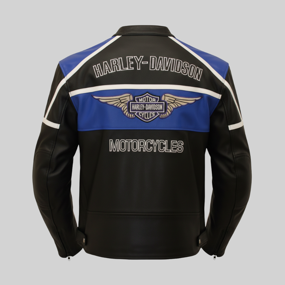 Harley Davidson Leather Jacket Men Biker Riding Black Blue Coat