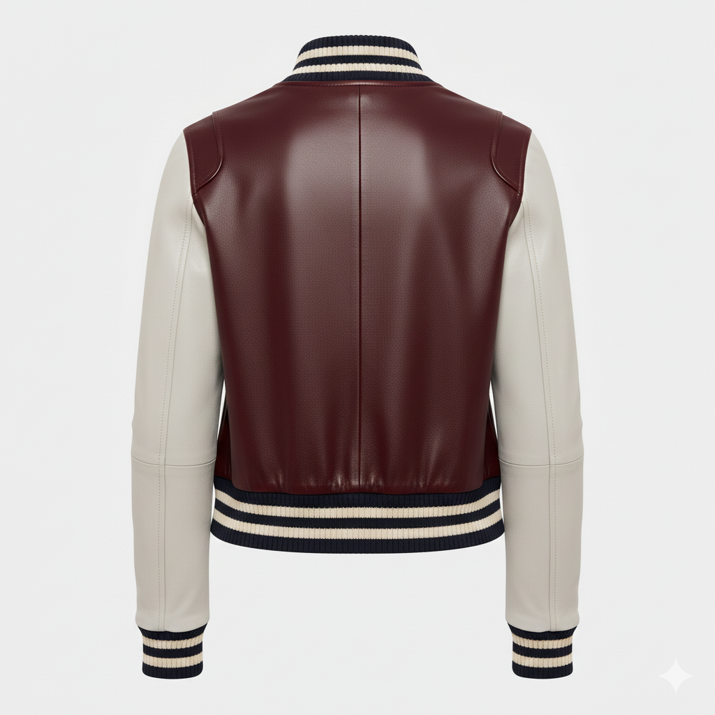 Experience the ultimate blend of classic style and modern luxury with this beautiful Leather Varsity Jacket. Perfect for making a statement, this jacket features a rich burgundy body and contrasting light grey sleeves, all crafted from high-quality leather. The iconic ribbed cuffs and hem add a sporty, tailored finish. This premium Leather Varsity Jacket is designed for comfort and durability, making it an essential piece for any stylish wardrobe. Find your perfect fit and explore more premium outerwear at www.chinkaraleathers.com. Our dedication to quality means this Leather Varsity Jacket will be a favorite for years to come. Elevate your look today with this timeless Leather Varsity Jacket!