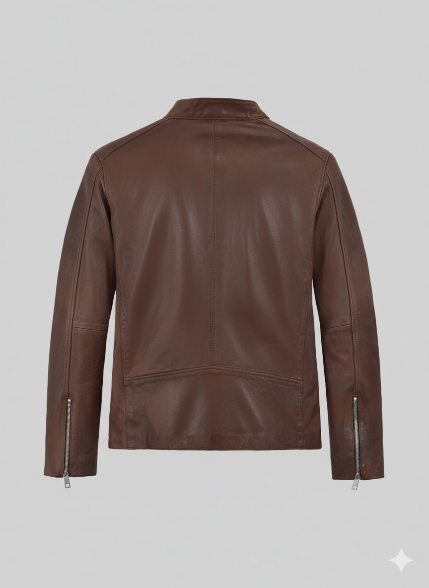 Men’s Premium Brown Leather Motorcycle Racer Jacket Slim Fit Description