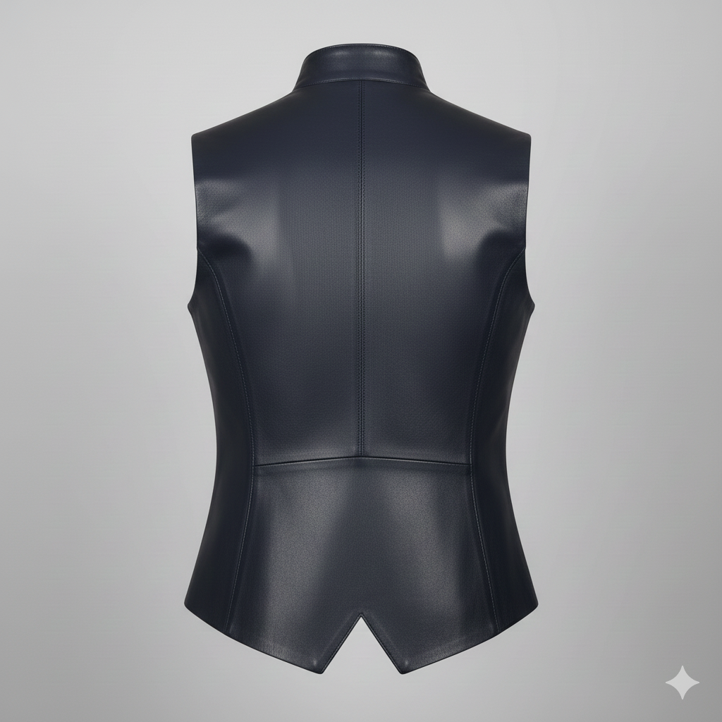 This sleek, contemporary Midnight Blue Men’s Leather Vest is the ultimate addition to your modern wardrobe. Crafted from premium, supple leather in a deep, midnight-blue hue, it offers a redesigned look with clean panel lines and a subtly tapered silhouette. The stand collar and front-facing zipper closure create a refined yet bold statement. This stylish Midnight Blue Men’s Leather Vest features subtle texture detailing that enhances its high-end appearance. Elevate your look with this exceptional Midnight Blue Men’s Leather Vest. See more high-quality leather goods at www.chinkaraleathers.com.
