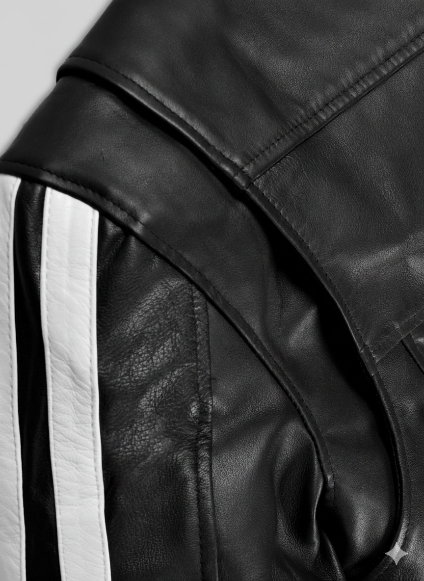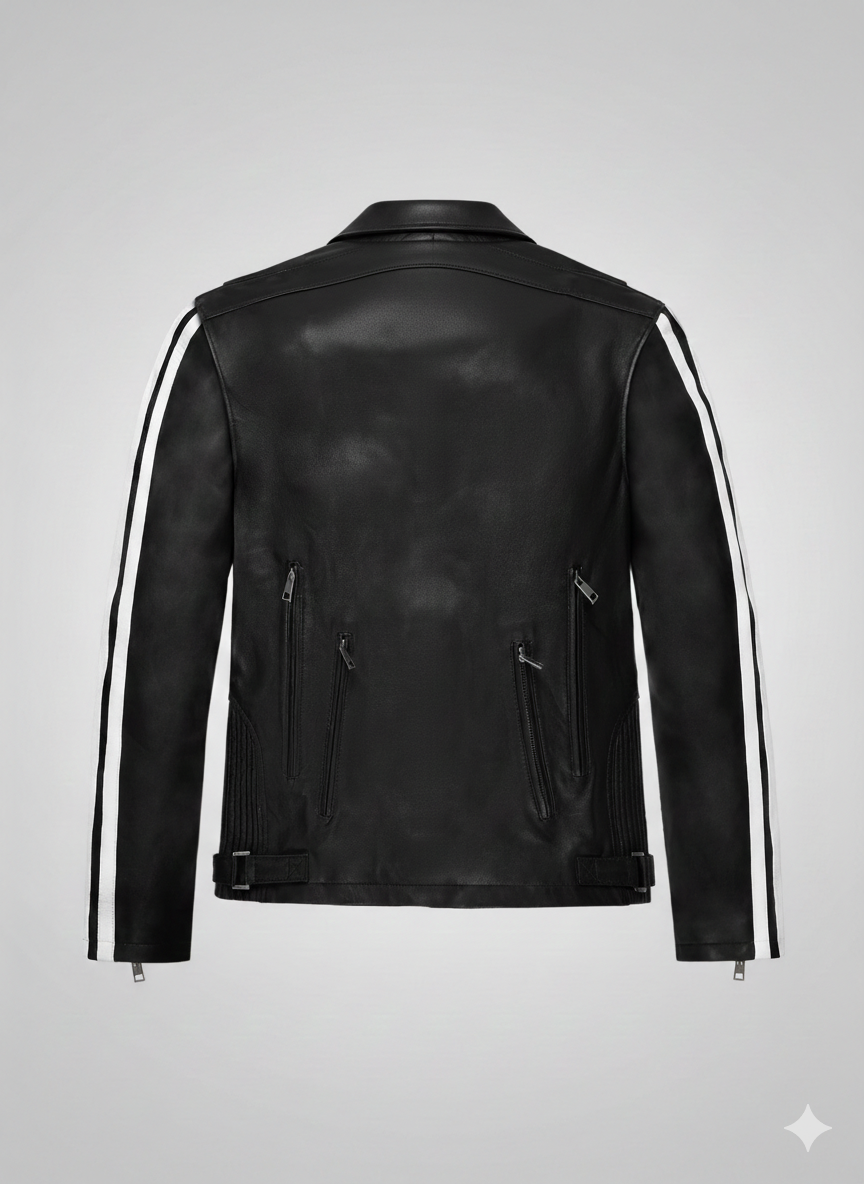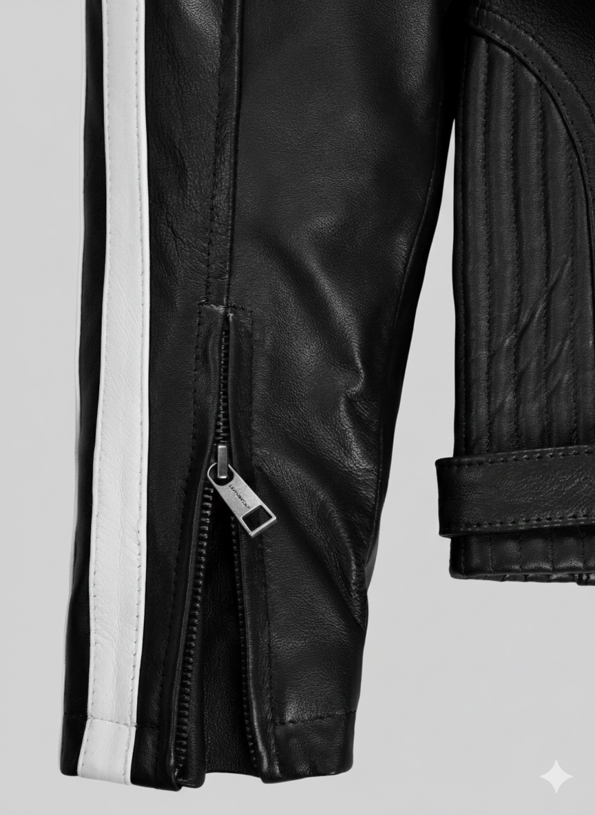 Owners of this Robert Pattinson Leather Jacket will appreciate the meticulous attention to detail. We include striking white racing stripes on the sleeves to add a modern contrast that draws the eye instantly. This men’s biker jacket serves as a durable wardrobe staple designed to withstand the elements while maintaining its refined shape. The inner satin lining ensures maximum comfort for all-day wear during any season.